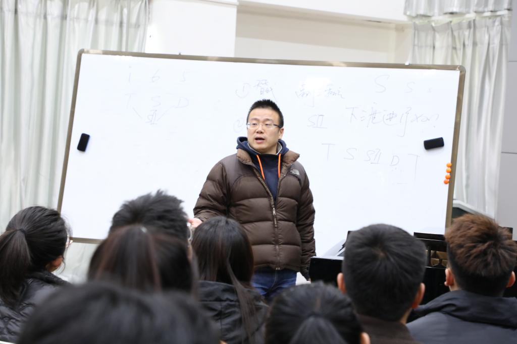 中央伟德国际victor1946教师团由音乐教育公司副经理张征及林松涛、孙懿坤、潘梦三位老师组成。按照老师们的课程安排,公司积极和教师团沟通,力求让更多的员工体验到不同课程的教学,四位教师采取课程固定、员工流动的形式进行。张征教授的《音乐与钢琴即兴》、林松涛老师的《视唱练耳-体验式歌唱教学》、孙懿坤老师的《钢琴教学运用》、潘梦老师的《音乐与动作》四门课程,课堂气氛活跃、员工参与度极高,课堂寓音乐与动作、韵律与卡农、合唱与节奏等于一体的教学模式,为我们带来了视、听、动的全新体验。教师们一下飞机就奔赴公司,特别是林松涛老师在高原反应头晕的情况下,坚持走进课堂,这种敬业精神深深感动和影响着在场的每一个人。