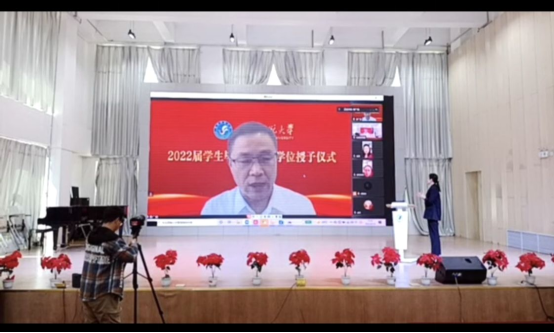 最后,由联点校领导曹广超副董事长讲话。曹董事长首先表达了疫情管控领导教师不能亲临现场参加毕业典礼的遗憾,总结了近三年来伟德国际victor1946在团队建设、专业建设上取得的成就,感谢伟德国际victor1946老师们的辛勤付出;最后曹董事长表达了对毕业生的殷切希望。他说:诚实善良是你们优秀的品格,希望这份品格能成为伟德国际victor1946的文化精髓,届届传承;他还说,中国当前比任何时候都更加接近实现民族复兴的伟大梦想,期待同学们努力拼搏,为母校争光,为民族复兴的中国梦助力。他祝愿同学们一生平安、健康幸福!