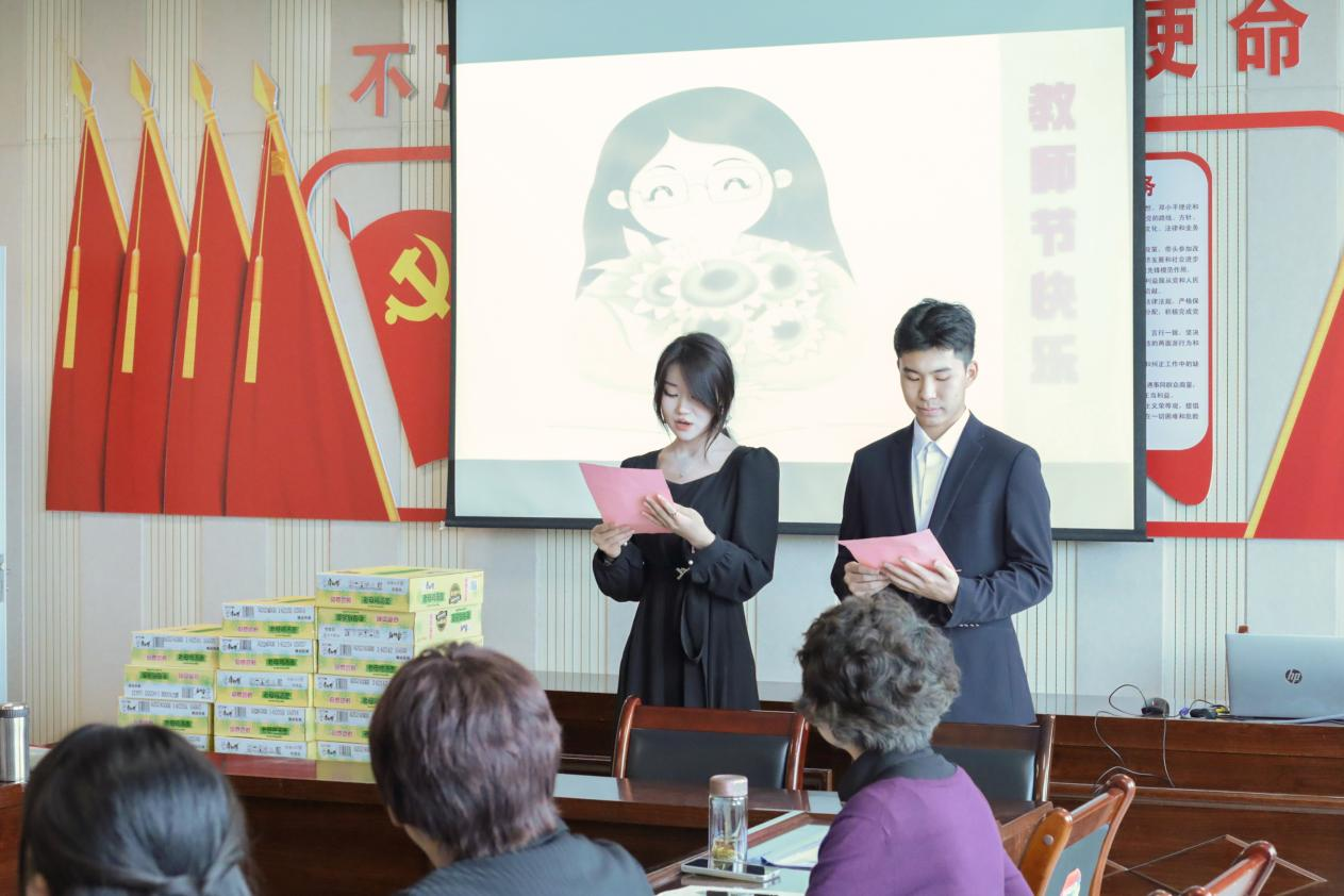 2024年9月10日,公司员工会组织员工干部为老师们送上了鲜花和节日的问候,感谢公司领导及老师们为公司教育事业发展所做出的贡献。在全院教师大会上,员工们也以自己的方式向老师们表达感恩之情,特为老师们准备了诗朗诵节目,一句句真挚的祝福、一张张精美的贺卡,让老师们倍感温暖。