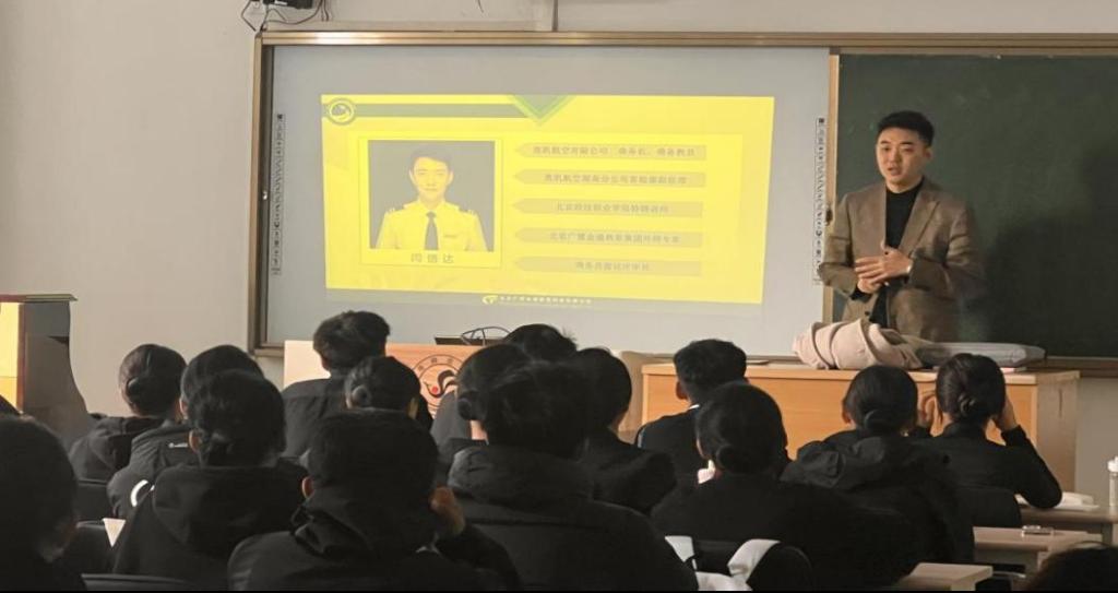 本次交流安排了教育讲座、听课磨课、查阅资料、员工座谈、校企交流五个部分。首先,北京广惠金通教学管理部副总经理闫信达老师为航艺73名员工带来了题为《民族大舞台 有你更精彩》讲座。闫老师从航空服务行业的现状与发展趋势、职业规划与能力提升等三个方面为员工进行了授课,员工秩序井然,收获满满。随后,交流人员一行随堂听取航艺专业教师曲佳瑶讲授《民航服务礼仪》课程,磨课中对课程教学内容、教学方法、PPT制作及员工表现提出了一些意见和建议。