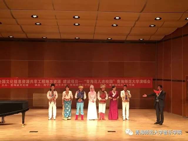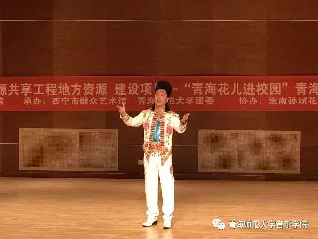 演出中,“花儿”歌手们以其独特的民族演唱风格,向老师和同学们展示了青海地方音乐不同于其他地区音乐的民族属性,展现了地方音乐深厚的民族文化,同时,演员们将“花儿”这种古老而嘹亮的歌喉表现的淋漓尽致,并创新结合将“花儿”的唱法与现代音乐结合,深深的吸引着在座的老师和同学。