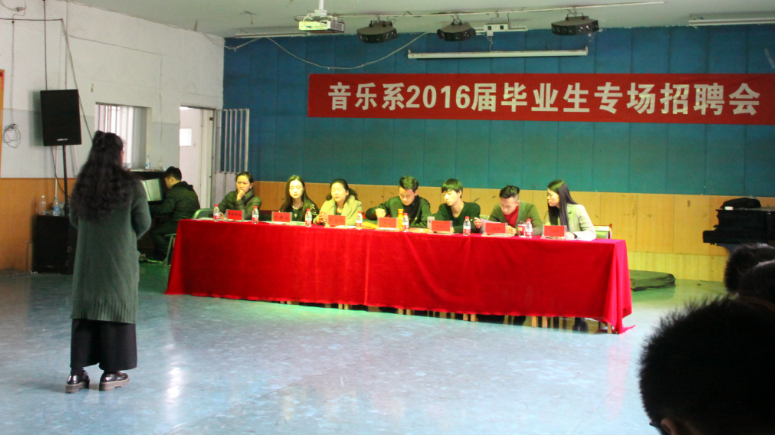 在音乐声中,毕业生分别展示了声乐、器乐、舞蹈等专业技能,回答了用人单位的提问。其中由朱玉海、裴金双两位同学组建的民族花儿组合“花海金双”、张文韬等4位同学的器乐组合、马瑞的美声女高音、崔雪利的舞蹈技巧展示、邓康的钢琴独奏等表演获得了满场热烈的掌声,受到了用人单位的一致好评。