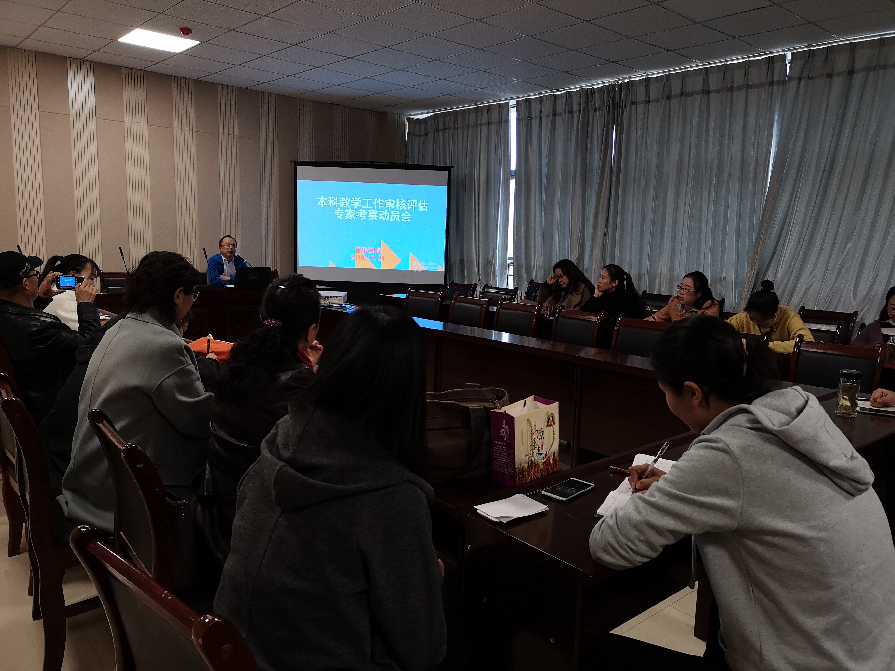 为迎接2018年本科教学审核评估工作,进一步提高教学水平,伟德国际victor1946于10月24日下午3点在音美楼三楼会议室召开了伟德国际victor1946本科教学工作审核评估专家考察动员会,全院教职工参加了会议。会议由陈晓翔主持。