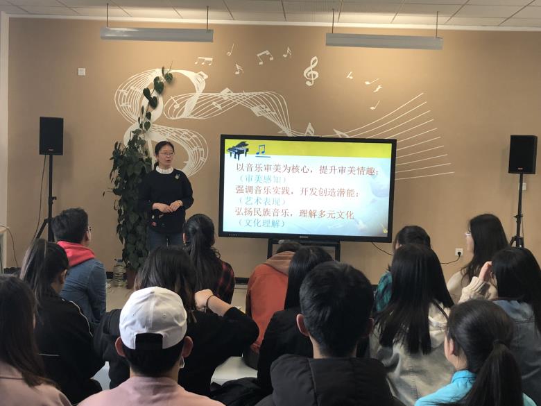 本次讲座目的在于,一是为师范生教学技能大赛做赛前辅导,提高其教学和专业水平;二是帮助大家解决高中音乐课堂教学设计环节中会出现的问题;三是为即将到来的师范生顶岗支教夯实基础。王老师在讲课中说道:高中音乐课堂中,应当注重对音乐本体的体验,需要求员工音乐理解能力、辨识能力、记忆能力等,都构建在认识多种音乐要素的载体上。在教学设计方面,需通过三个维度来完整展现最真实的高中音乐教学课堂。王老师通过融合音乐、舞蹈、表演,用不同的角度和教学方式展开引领,充分体现了以员工为本的新型音乐教育理念,为员工提供了感受音乐、表现音乐、创造音乐以及学习、积累音乐文化的广阔空间。