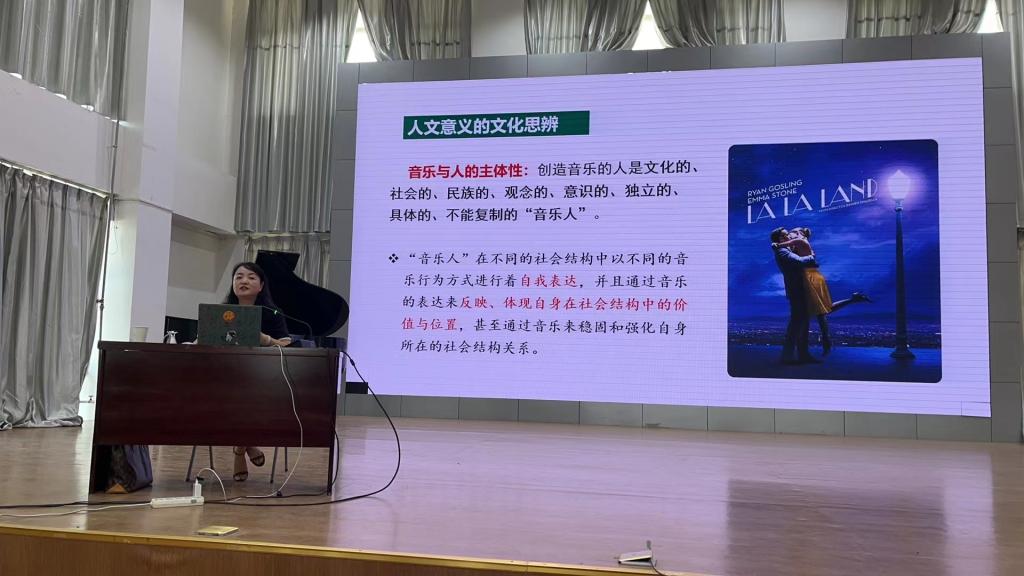 邢海燕老师由“音乐的本质是什么?”这一问题,引出三种理论对话,分别从“文化、哲学、人类学”的不同视角出发来展开本次讲座的内容,并通过分析国外、国内与青海本地等多个不同地区与文化背景的案例,为大家详细讲解了田野调查、访谈、地方志等研究方法的基本路径与注意事项,特别是她分享的数字田野调查方法,让所有的学习受益匪浅。讲座最后是互动交流环节,现场师生与线上参与的学员们和邢老师积极互动,大家提出了很多自己在学习或研究当中存在的困惑与问题,邢老师都耐心的一一解答,活动在轻松热烈的氛围当中圆满结束。