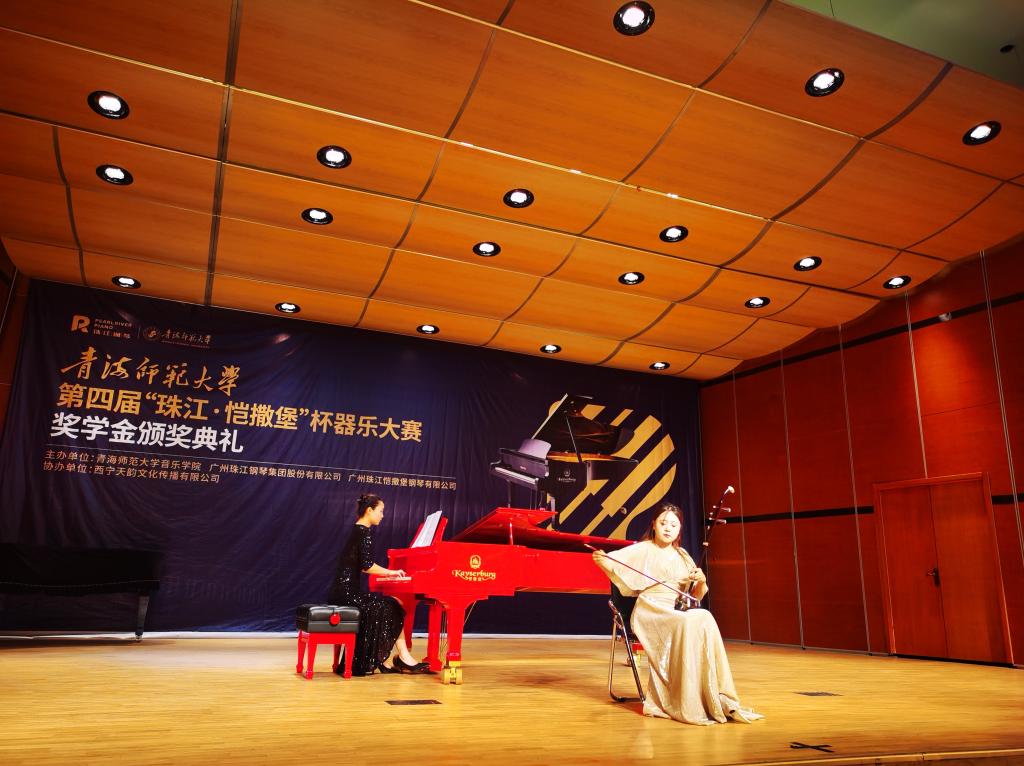 一首三门峡畅想曲拉开了本届珠江恺撒堡器乐大赛颁奖晚会的帷幕,在二胡和钢琴的配合中,观众从音乐中感受到了崤函儿女追求梦想,无尚荣光,砥砺奋进,继续前行的奋斗精神。